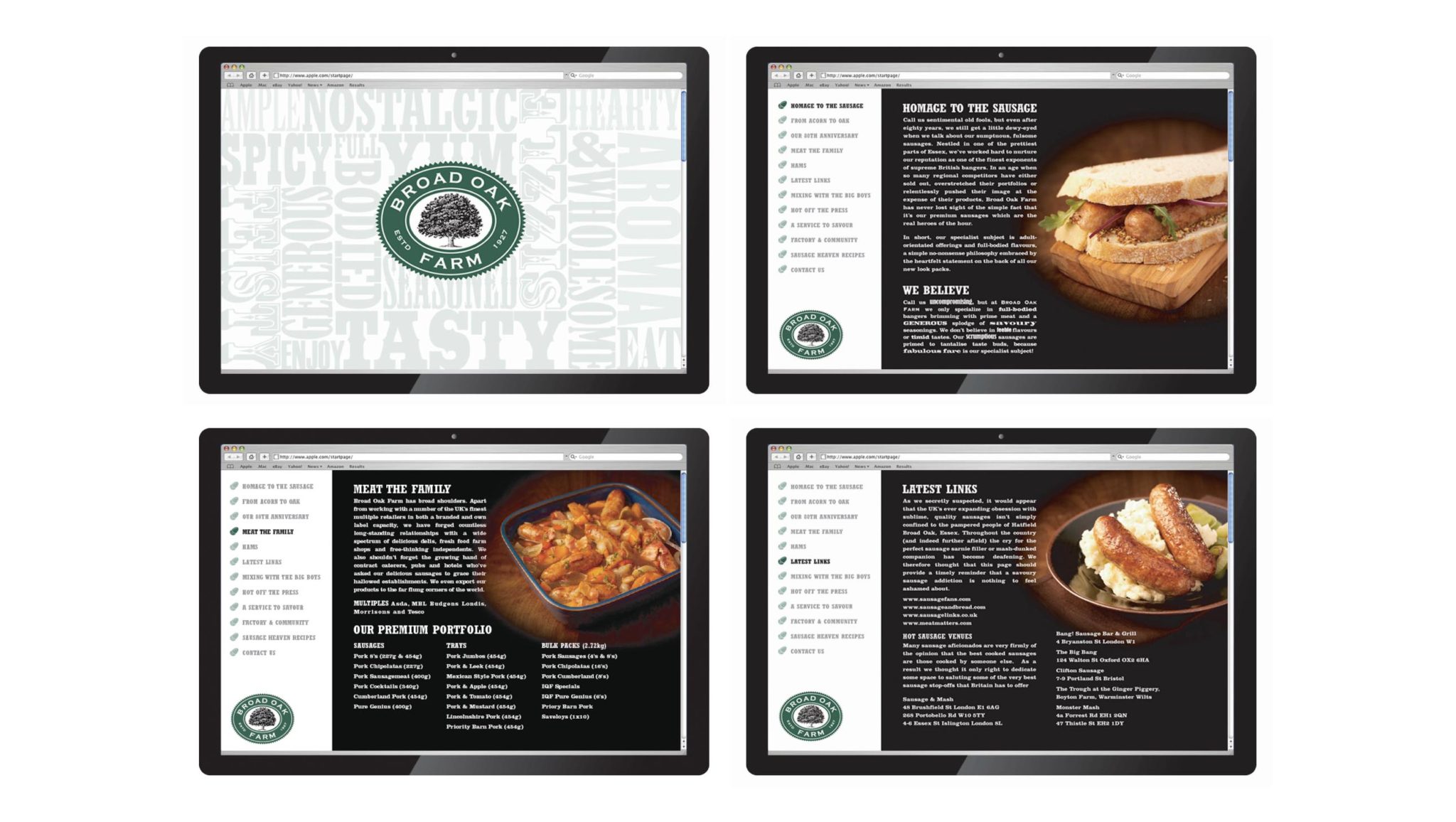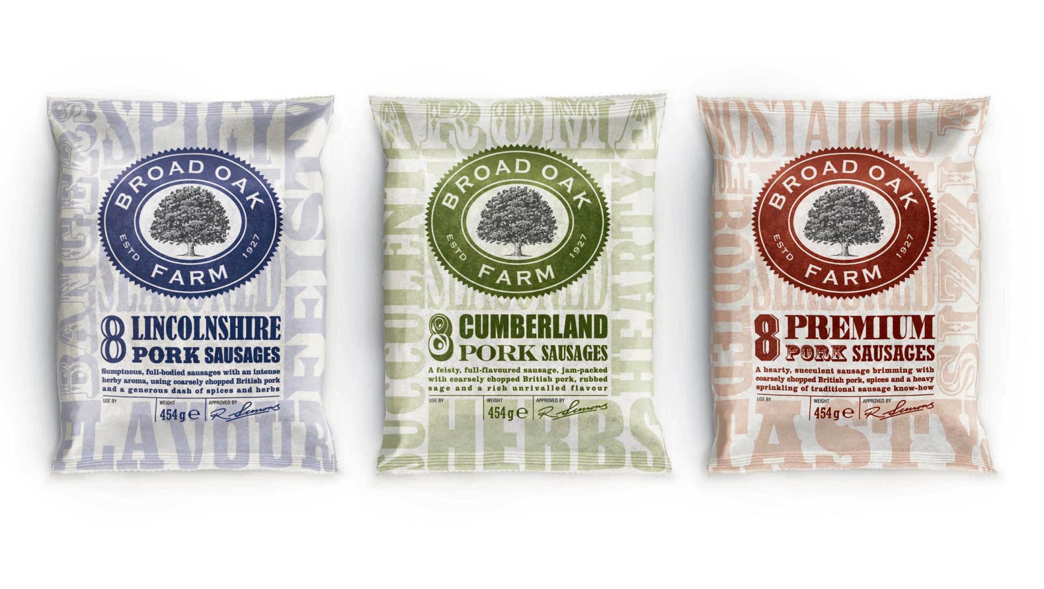Broad Oak Farm An identity which reflected Broad Oak Farm’sheritage and rural setting. The packaging fora new range of sausages highlighted all thereasons we love the great British banger,and the website continued the theme.