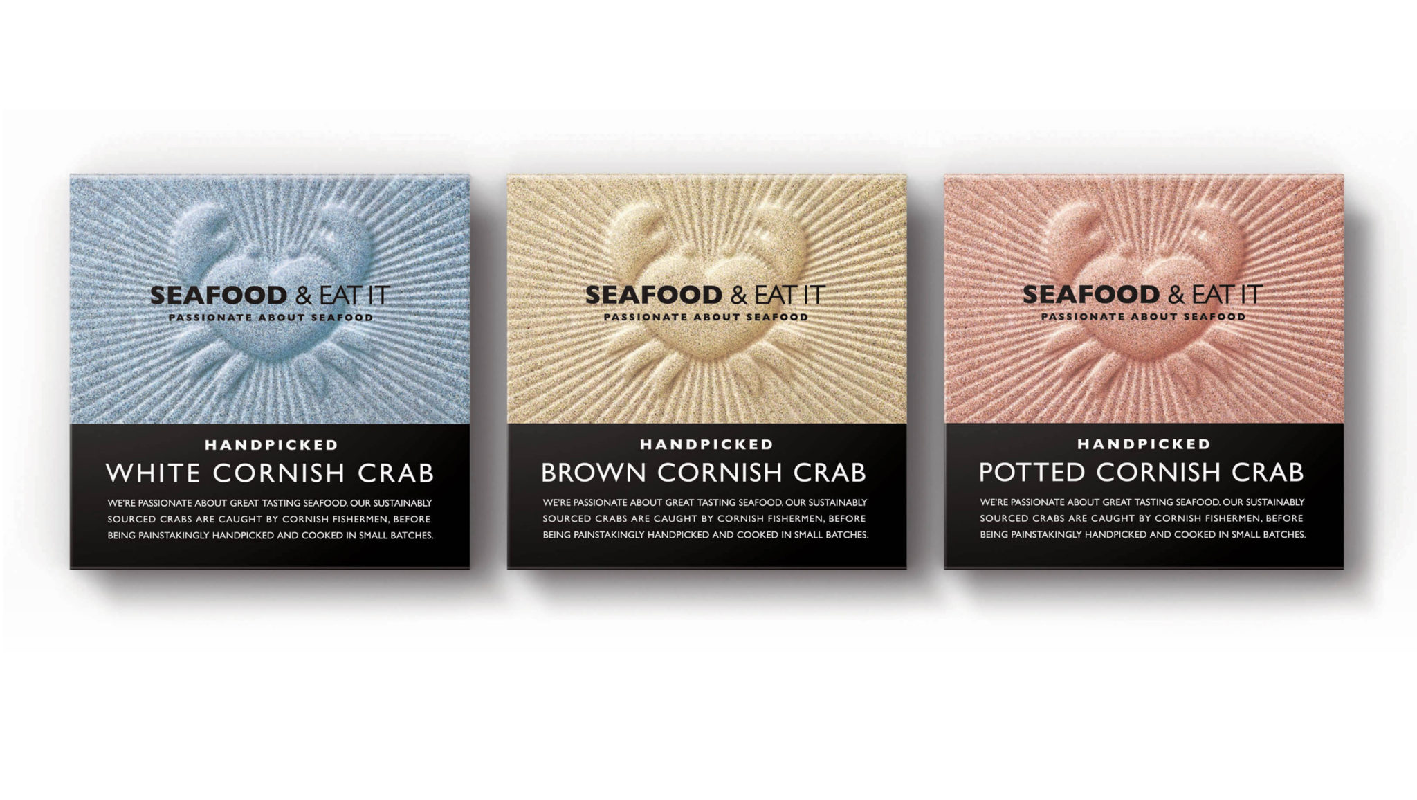 Seafood & Eat It This company is passionate about its high quality crab,so we created a logo for them combining a crab anda heart. On the packaging we depicted the logo as asand sculpture and the end result was exactly what theclient requested – a listing in Waitrose.